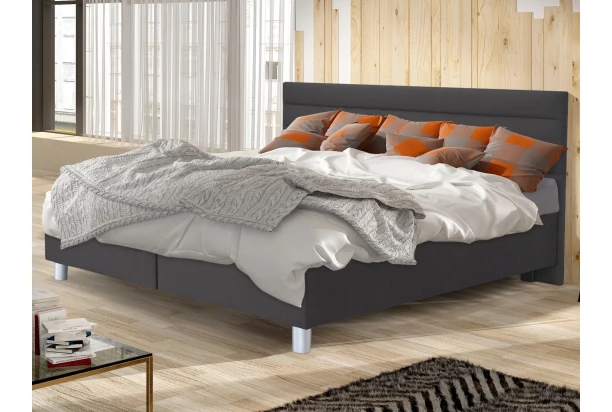 Moderní manželská postel o rozměru lůžka 160×200 cm – s roštem a matrací pro příjemné spaní. Prošívané zadní čelo doplňuje praktický úložný prostor, kam uschováte třeba ložní prádlo. Očalouněna látkou v antracitovém odstínu.