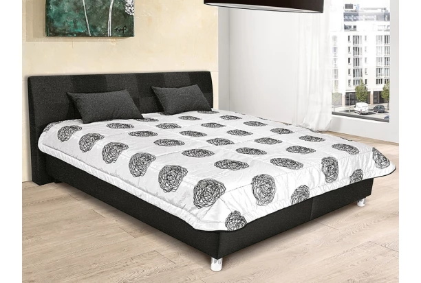 - včetně denní deky (potah: světle šedá látka s lesklým efektem z polyesteru a s černými vzory)