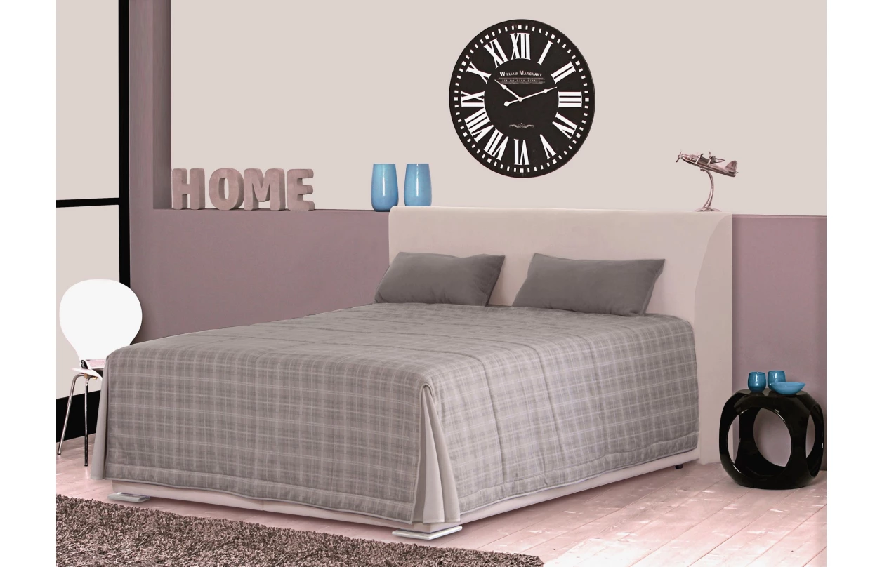 - 1 x denní deka (prošitý povrch, látka Valencia 376–18 – plochá tkanina, károvaný vzor, barva béžová/šedá/bílá, složení: 90% CO/10% PES)