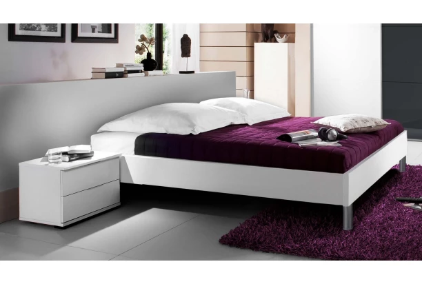 Univerzální postel o velikosti lůžka 180×200 cm v bílé barvě z programu Easy plus. Stabilní rám na kovových nohách je vybaven mechanismem, který umožňuje upevnit rošt do různých výšek podle požadované výšky lůžka.