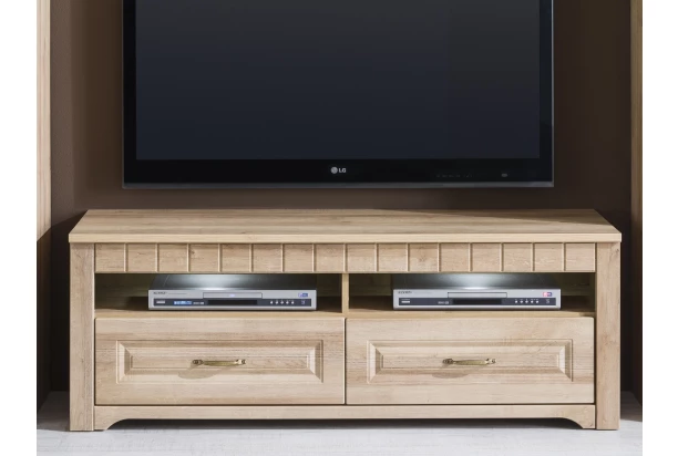TV skříňku z kolekce Atik ve venkovském stylu si zamilujete, vyrobena v dřevodekoru dub riviera. Okrasné frézované prvky, jedinečný vzhled i precizní zpracování řadí tento model mezi nejoblíbenější.