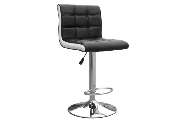 Pohodlné barové křeslo vyniká prošitím potahu z černé ekokůže. S kontrastně bílým lemem na straně sedáku.