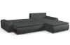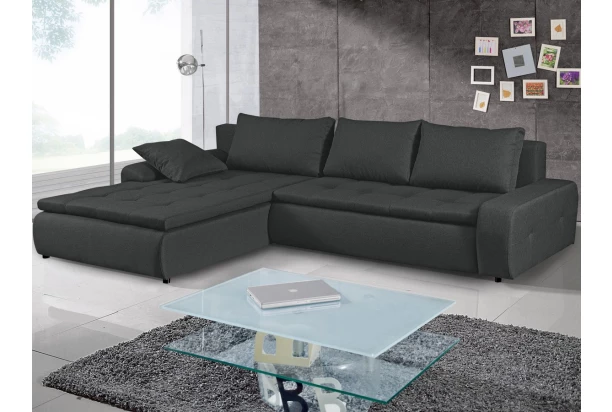 Ležérní rohová sedací souprava v oblíbeném trendovém designu je ideální pro chvíle pohody. Zaoblené tvary sedačky doplňuje prostorný otoman, rozkládací funkce na lůžko i úložný prostor. Potažena jemně strukturovanou látkou v barvě antracitová tmavě šedá.