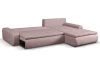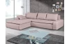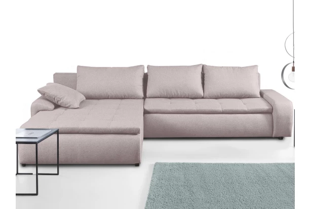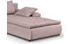 Ležérní rohová sedací souprava v oblíbeném trendovém designu je ideální pro chvíle pohody. Zaoblené tvary sedačky doplňuje prostorný otoman, rozkládací funkce na lůžko i úložný prostor. Potažena jemně strukturovanou látkou v barvě růžová.