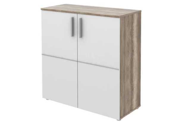 Série prostorných komod Ida je typická decentním proužkem na dveřích. Komoda 2-dveřová v dekoru dub Canyon/bílá.