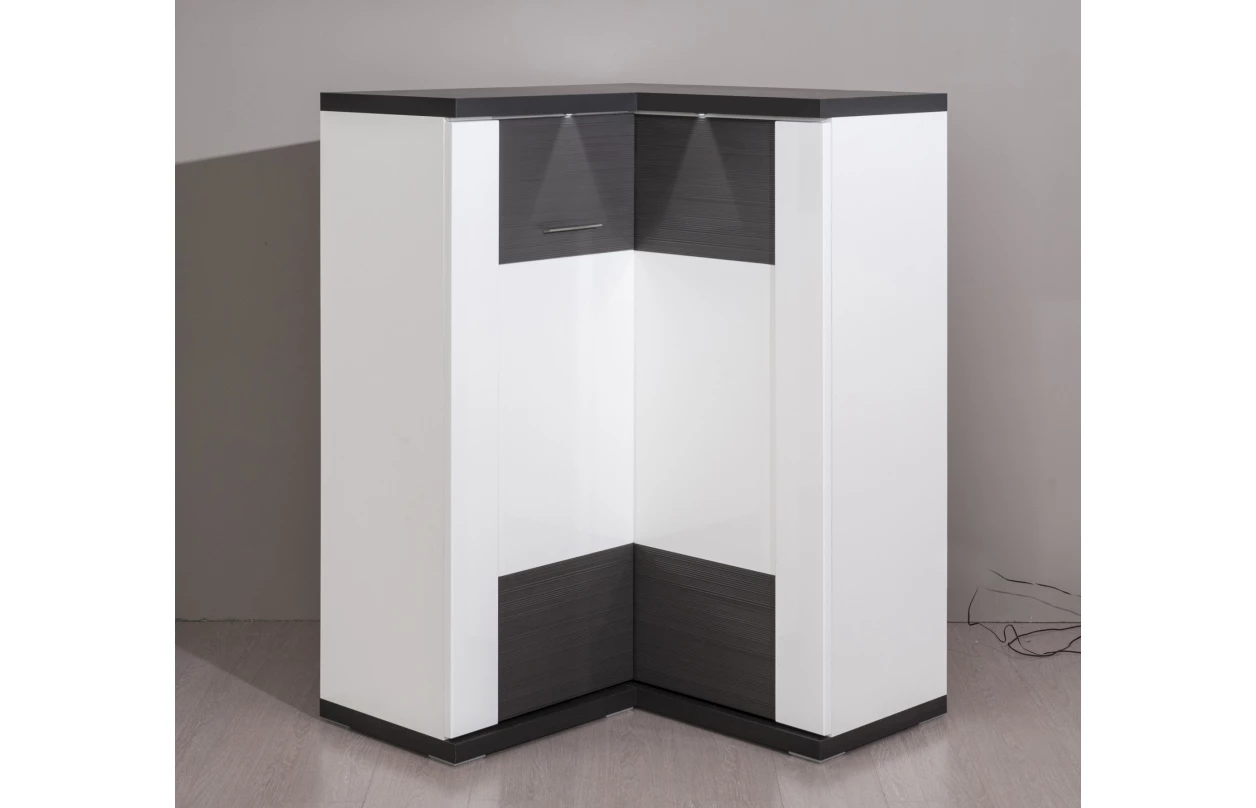 Rohová komoda Caracas typ 19, grafit/bílý lesk, s osvětlením