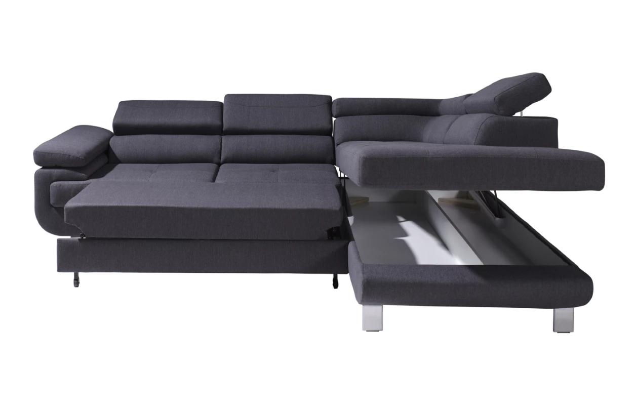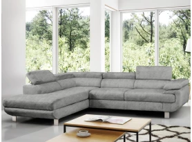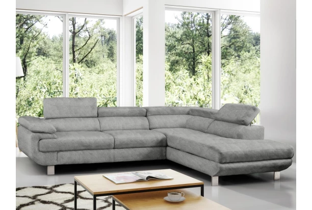 Rohová sedací souprava Lotos v módním designu a s polohovatelnými opěrkami pro vaše pohodlí. Sedačka s otomanem vytváří pravý roh a je očalouněna látkou s efektem broušené kůže v barvě světle šedá. Navíc vybavena rozkládací funkcí a praktickým úložným prostorem ve své dolní části, což ocení každá domácnost.