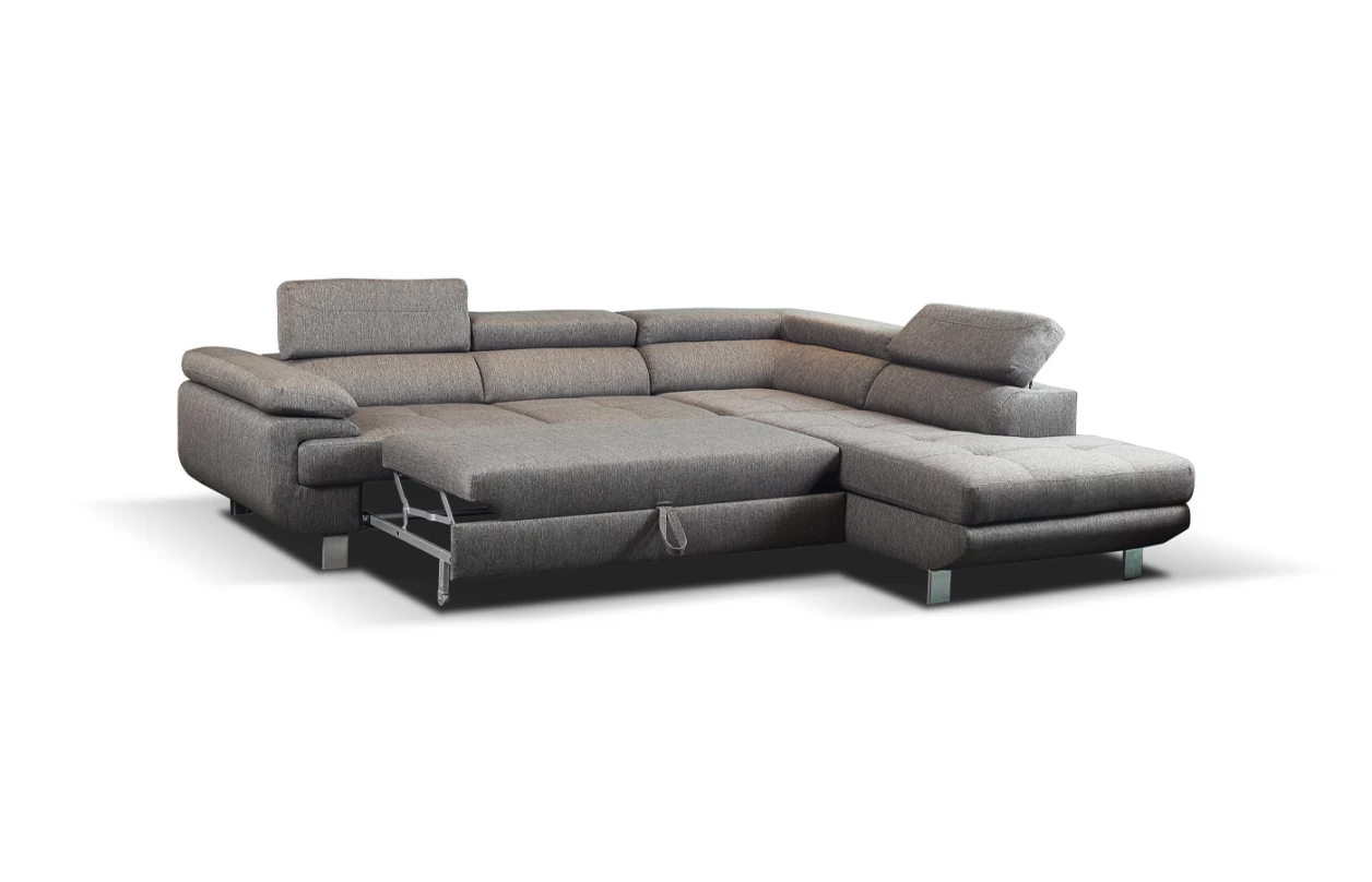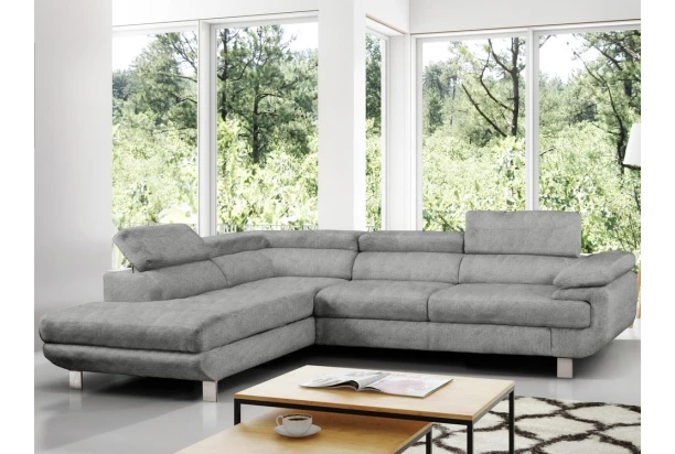 Rohová sedací souprava Lotos v módním designu a s polohovatelnými opěrkami pro vaše pohodlí. Sedačka s otomanem vytváří levý roh a je očalouněna látkou s efektem broušené kůže v barvě světle šedá. Navíc vybavena rozkládací funkcí a praktickým úložným prostorem ve své dolní části, což ocení každá domácnost.
