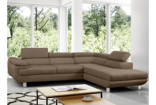 Rohová sedací souprava Lotos v módním designu a s polohovatelnými opěrkami pro vaše pohodlí. Sedačka s otomanem vytváří pravý roh a je očalouněna tkaninou v barvě světle hnědá. Navíc vybavena rozkládací funkcí a praktickým úložným prostorem ve své dolní části, což ocení každá domácnost.