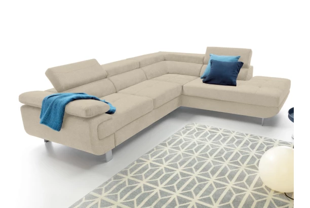 Rohová sedací souprava Lotos v módním designu a s polohovatelnými opěrkami pro vaše pohodlí. Sedačka s otomanem vytváří pravý roh a je očalouněna tkaninou v barvě béžová. Navíc vybavena rozkládací funkcí a praktickým úložným prostorem ve své dolní části, což ocení každá domácnost.