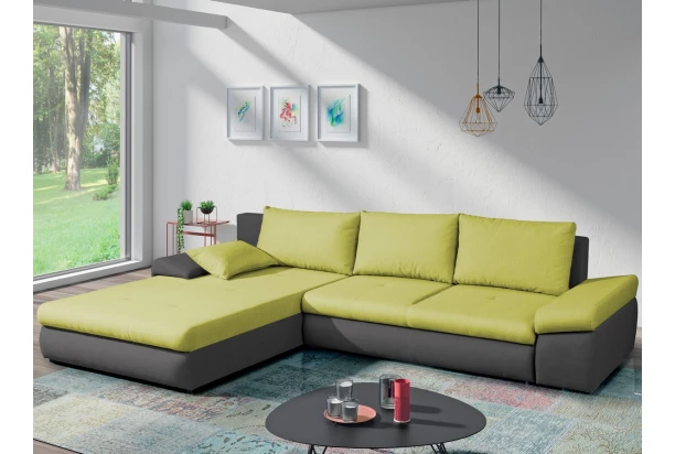 Komfortní rohová sedací souprava v zaoblených tvarech pro každý moderní interier. Očalouněna v kombinaci hořčicová žlutá/antracitová tmavě šedá tkanina. U sedačky oceníte nejen její pohodlí, úložný prostor a funkci rozkladu, ale také možnost univerzálního sestavení jako pravý nebo levý roh. Otoman sedačky tak může být umístěn na pravou anebo levou stranu – snadno podle vaší potřeby.