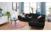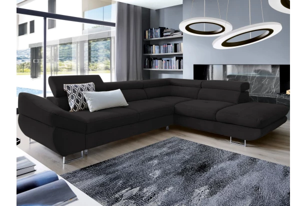 Rohová sedací souprava Fabio s otomanem umístěným na pravé straně je ideálním spojením moderního designu a pohodlného stylu sezení. Očalouněna příjemně měkkou látkou v barvě černá. Včetně polohování opěrek, úložného prostoru i rozkládací funkce.