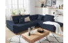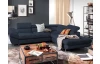 Rohová sedací souprava Fabio, tmavě modrá látka, pravý roh