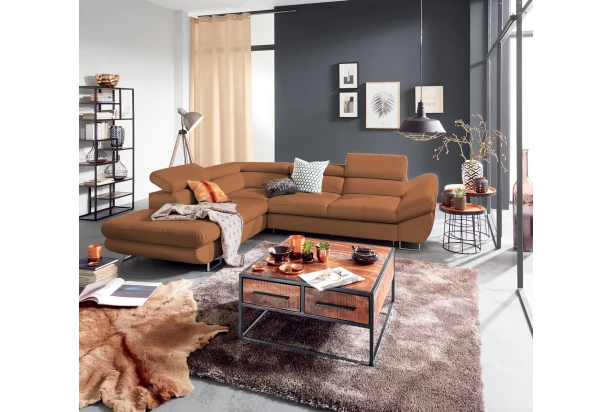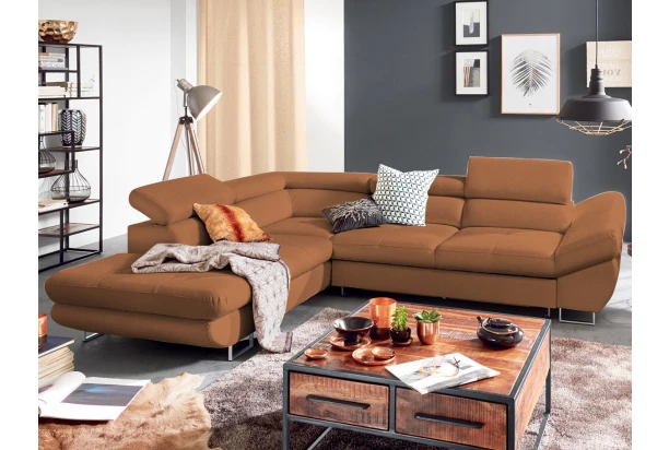 Rohová sedací souprava Fabio s otomanem umístěným na levé straně je ideálním spojením moderního designu a pohodlného stylu sezení. Očalouněna příjemně měkkou látkou v barvě rezavá. Včetně polohování opěrek, úložného prostoru i rozkládací funkce.