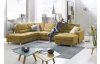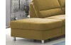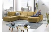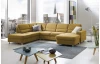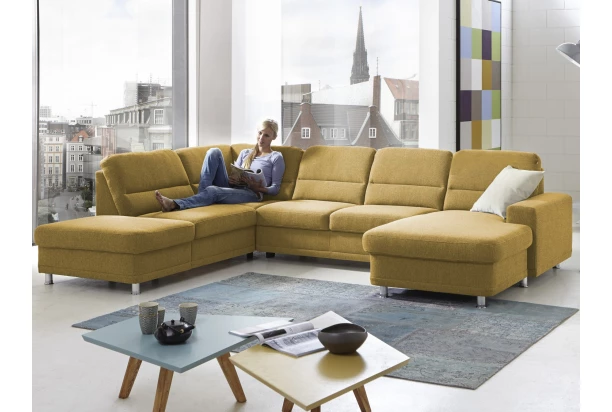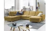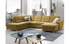Sedací souprava do tvaru písmene U je ideální do větších prostor, kde se díky svým rozměrům stane dominantou celého pokoje. Kvalitní konstrukce z tvrdého dřeva v kombinaci s vysoce kvalitní studenou pěnou a vlnovcovými pružinami zajistí komfort pro celou rodinu. Očalouněna jemně strukturovanou látkou v odstínu hořčicově žlutá. Varianta sedačky bez doplňkových opěrek hlavy, bez úložné zásuvky a rozkládací funkce na lůžko.