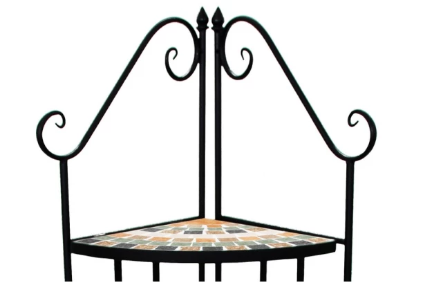 Kovový rohový regál s motivem zelené mosaiky najde své místo nejen na venkovní zahradě a balkonu, ale také kdekoliv v interieru.