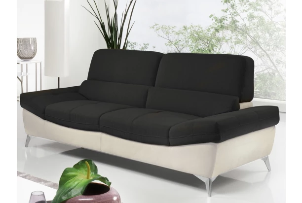 Moderně zaoblené tvary podtrhuje kombinace potahových materiálů a kovové tvarované nohy, které dodávají sedačce vzdušnost.