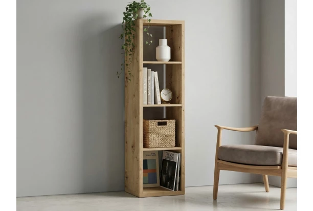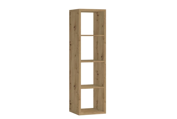 Univerzální regál v dekoru dub artisan o velikosti 4×1 můžete umístit přímo ke stěně nebo volně do prostoru místnosti. Tento regál se 4 přihrádkami pasuje jak do obýváku, tak do jídelny, dětského pokoje anebo třeba pracovny. Do přihrádek můžete ukládat dekorace, knížky, hračky nebo jiné potřeby. Přihrádky můžete navíc doplnit úložnými látkovými boxy pro přehledné ukládání drobností.
