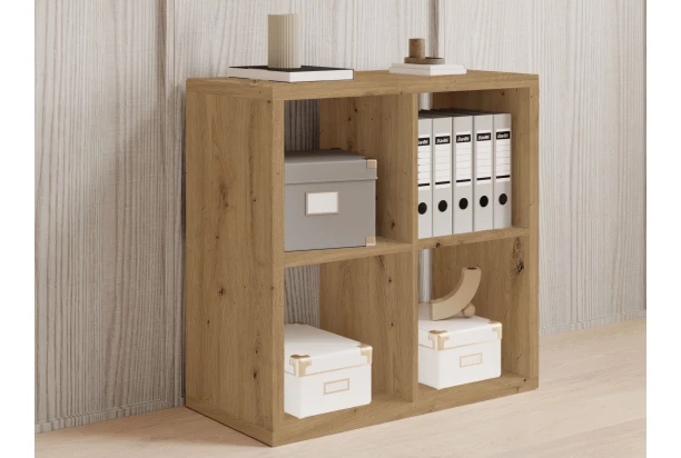 Univerzální regál v dekoru dub artisan o velikosti 2×2 můžete umístit přímo ke stěně nebo volně do prostoru místnosti. Tento regál se 4 přihrádkami pasuje jak do obýváku, tak do jídelny, dětského pokoje anebo třeba pracovny. Do přihrádek můžete ukládat dekorace, knížky, hračky nebo jiné potřeby. Přihrádky můžete navíc doplnit úložnými látkovými boxy pro přehledné ukládání drobností.