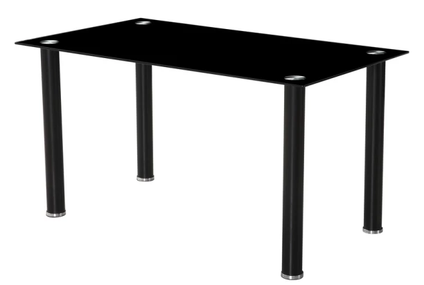 Jídelní stůl s horní deskou z černého tvrzeného skla se univerzálně hodí do jakékoliv moderní jídelny.