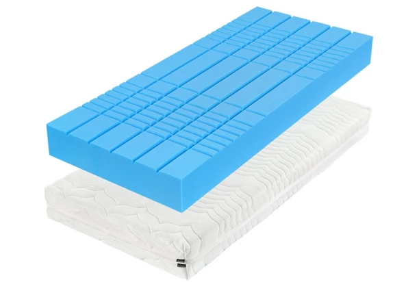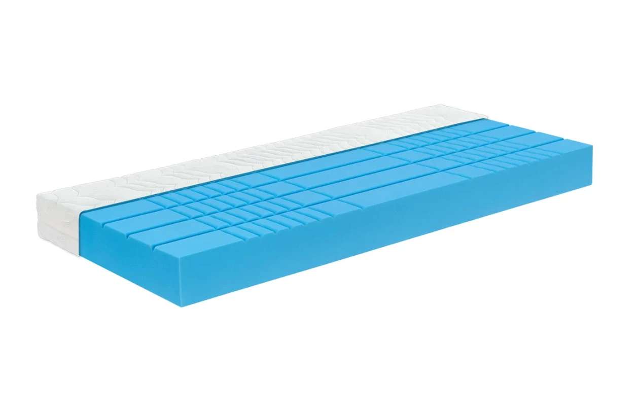 Robustní a tuhá matrace z pružné vzdušné pěny Flexifoam® Blue Comfort. Oboustranná – možnost volby profilované strany anebo pevnější neprofilované strany. Vybavena pratelným potahem s klimatizačním proševem, který pomáhá odvádět pot a dodává lůžku tepelnou izolaci – ideální také pro alergiky.