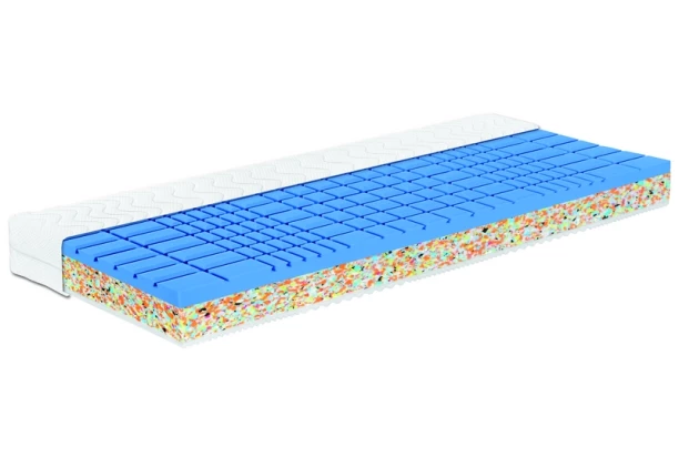 - středová vrstva: tlakově pojená Flexifoam® RE pěna – vysoká objemová hmotnost – dodává matraci přirozenou tuhost a výdrž, je zárukou dobrých ortopedických vlastností a dlouhé životnosti matrace