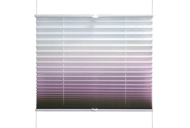 Plisé žaluzie na okno v rozměru 75×130 cm a ve fialovém odstínu jsou vyrobeny ze skládané tkaniny a snadno se přizpůsobí vašim potřebám – jejich snadné posouvání umožňuje zastínění libovolné části okna podle aktuální potřeby.