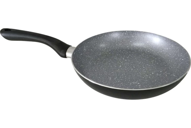 Vysoce kvalitní pánev s nepřilnavým povrchem vyrobená z hliníku v kamenném vzhledu je ideální pro zdravé smažení s nízkým obsahem tuku. Praktická profesionální plastová rukojeť usnadňuje používání při vaření. Průměr 20 cm.