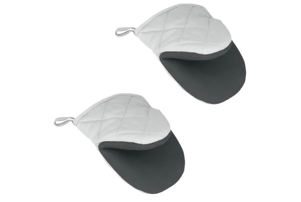 Praktické kuchyňské rukavice s vnější textilní stranou a protiskluzovou gumovou vnitřní stranou pro snadnější a bezpečnější uchopení horkého nádobí. Balení obsahuje 2 chňapky v šedo-černém provedení, které využijete při vaření, pečení nebo grilování.