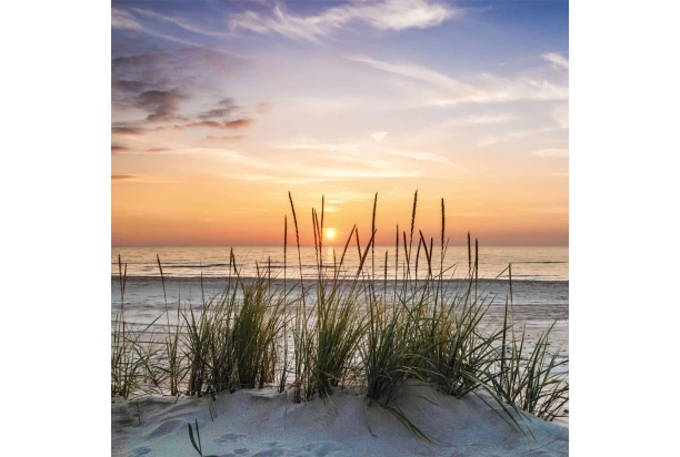 Obraz na zeď o rozměru 35×35 cm s motivem západu slunce u moře poskytne příjemný mořský vánek každé domácnosti. Do interiéru také vnese uklidňující atmosféru a pohodu.