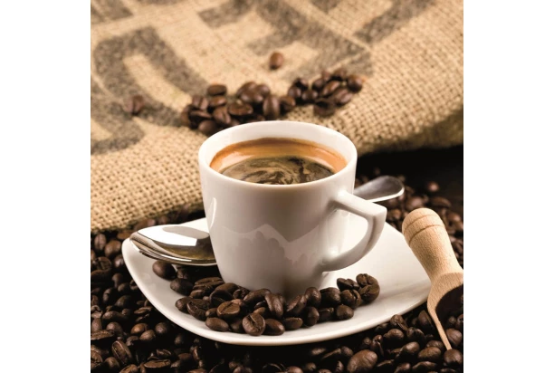 Čtvercový obraz na zeď o rozměru 35×35 cm s motivem kávy. Šálek voňavé kávy doplňují čerstvá pražená zrna. Díky barvám bude obraz dokonale vynikat na světlé stěně.