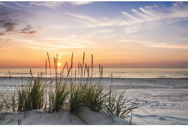 Obraz na zeď o rozměru 90×60 cm s motivem západu slunce u moře poskytne příjemný mořský vánek každé domácnosti. Do interiéru také vnese uklidňující atmosféru a pohodu.