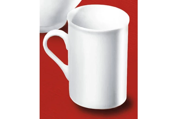 Klasický bílý hrnek o výšce 9,8 cm je vyroben z kvalitního porcelánu a zaujme každého milovníka jednoduchosti. Ideální pro podávání čaje nebo kávy.