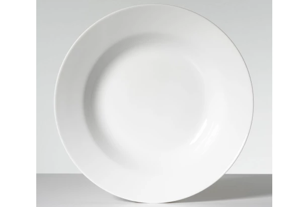 Klasický hluboký talíř o průměru 23 cm v čistě bílém provedení je vyroben z kvalitního porcelánu a zaujme každého milovníka jednoduchosti. Ideální pro servírování polévek nebo těstovin.