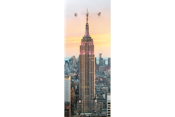 Dekorativní věšákový panel se stane praktickým doplňkem Vašich stěn v předsíni nebo v šatně. Atraktivní skleněný vzhled zaujme svým motivem města. Na horní háčky lze zavěsit oděvy, jako jsou kabáty nebo bundy. Háčky ve spodní části jsou vhodné pro zavěšení tašek.