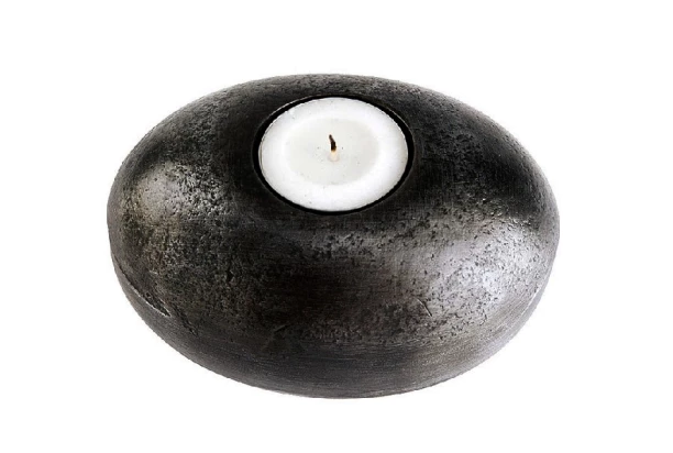 Stylový kovový svícen v černém grafitovém oválném provedení. Ideální do moderního interiéru.