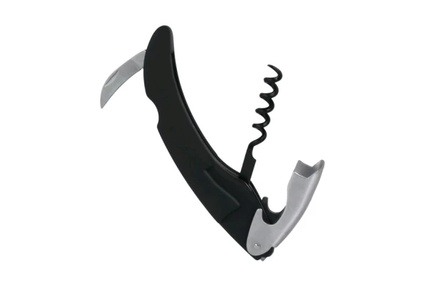 Univerzální vývrtka na víno opatřená otvírákem lahví a malým nožíkem. Ideální pomůcka v každé domácnosti.