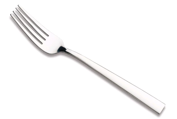 Příborová vidlička z leštěné nerezové oceli, univerzální pro jakoukoliv jídelnu.