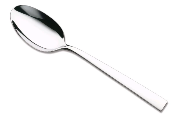 Čajová lžička z leštěné nerezové oceli, univerzální pro jakoukoliv jídelnu.