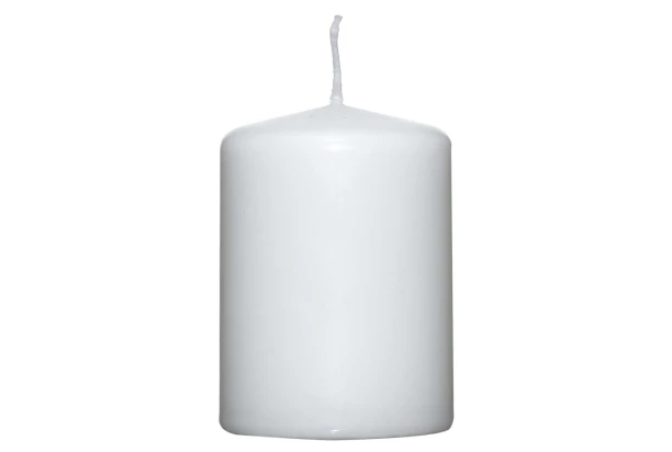 Bílá válcová svíčka o výšce 8 cm navodí v místnosti příjemnou atmosféru, pocit klidu a pohody.
