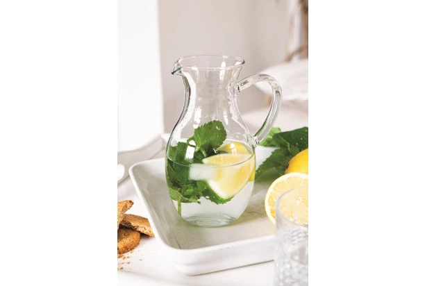 Skleněný džbán na vodu Classic o objemu 1,5 l. Vhodný na přípravu nealkoholických nápojů, které můžete díky oušku pohodlně servírovat.