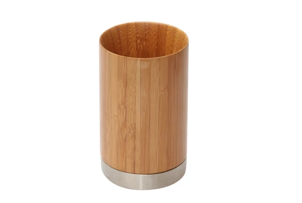 Koupelnový kelímek z kombinace z kovu a bambusu zútulní atmosféru každé koupelny.