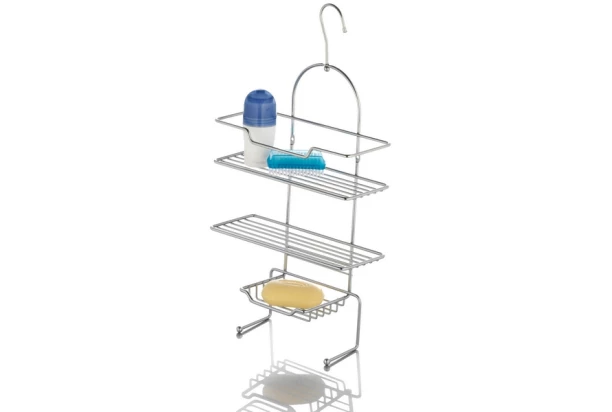 Koupelnový nástěnný regál z chromově lesklého kovu poslouží v jakékoliv moderně zařízené koupelně. Obsahuje celkem 3 přihrádky.