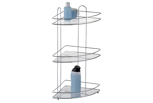 Praktický rohový regál se 3 policemi pro zavěšení nebo postavení je vhodný nejen do koupelny, ale své využití najde i kdekoliv jinde ve Vaší domácnosti.