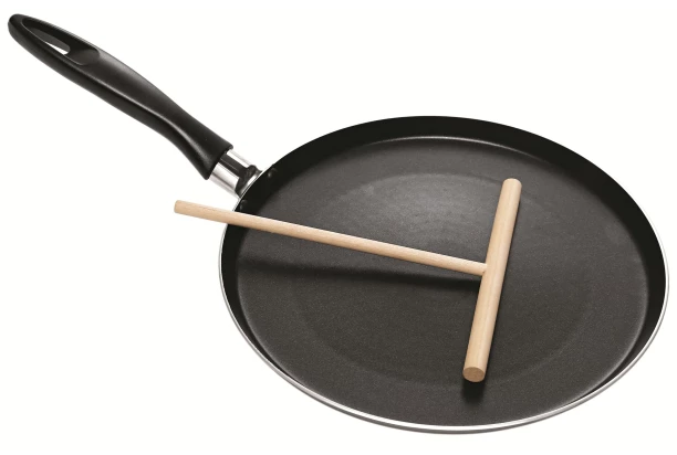 Vysoce kvalitní pánev s nepřilnavým povrchem vyrobená z hliníku má snížený okraj, a proto je ideální pro přípravu lahodných palačinek nebo omelet. S pánví obdržíte i rozmetač těsta. Průměr 26 cm.