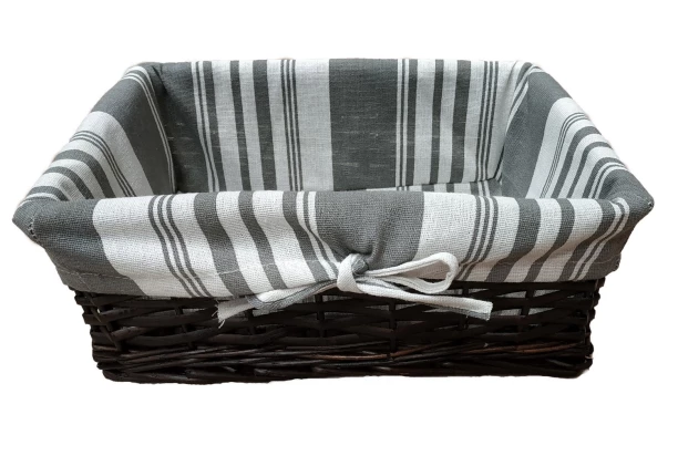 Úložný košík z přírodního vrbového proutí o rozměru 33×13×23 cm v hnědém provedení je vybaven šedo-bílou látkou. Košík bude nejen vynikající pro ukládání věcí, ale bude i krásnou ozdobou Vašeho interiéru.
