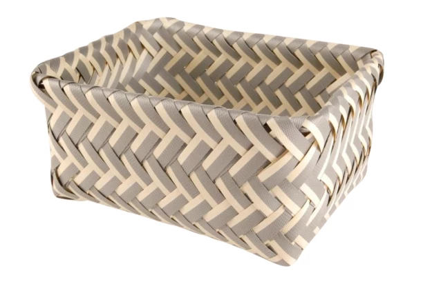 Pletený košík z plastu prakticky poslouží pro ukládání různých věcí.