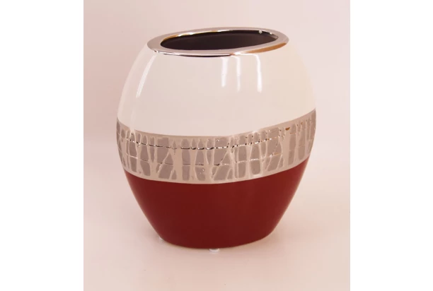Stylová váza o výšce 21,5 cm v červeno-bílém provedení zaujme svým tvarem a stane se skvělým designovým doplňkem do domácnosti. S květinami vytvoří krásnou bytovou dekoraci.
