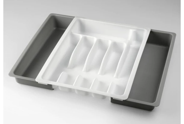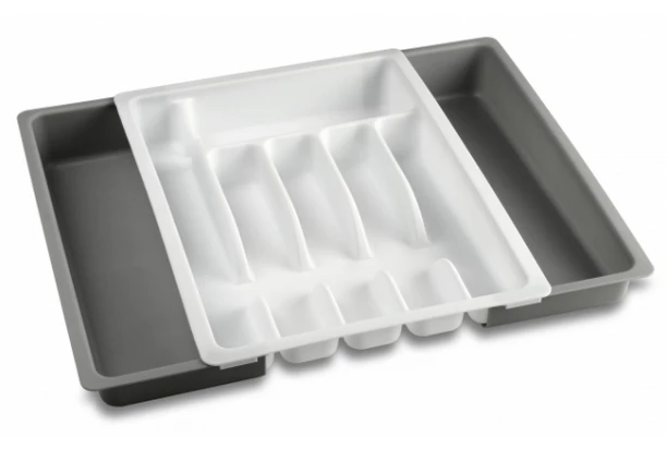 Kuchyňský pořadač na příbory z kolekce LifeStyle je vyroben z odolného plastu, je ideální pro praktické skladování příborů a kuchyňských potřeb. Nastavitelná šířka konstrukce se dokonale přizpůsobí všem standardním zásuvkám a nabízí 6 až 8 přihrádek pro přehledné ukládání.