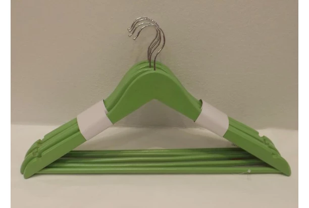 Sada 5 kusů klasických ramínek na oblečení. Dřevěná konstrukce v zelené barvě.